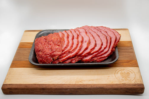 Ready to Eat -- By the Piece or Sliced. A whole loaf is about 3 pounds. Our loaf makes a great sandwich, eat it with eggs in the morning, or even ‘heat and eat’ like your traditional meatloaf.